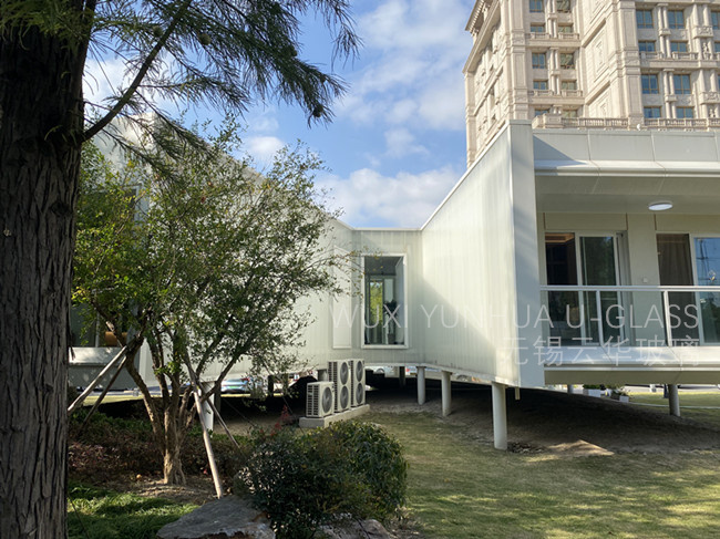 選用無錫云華K25&K32*60*7超白香梨噴砂U型玻璃