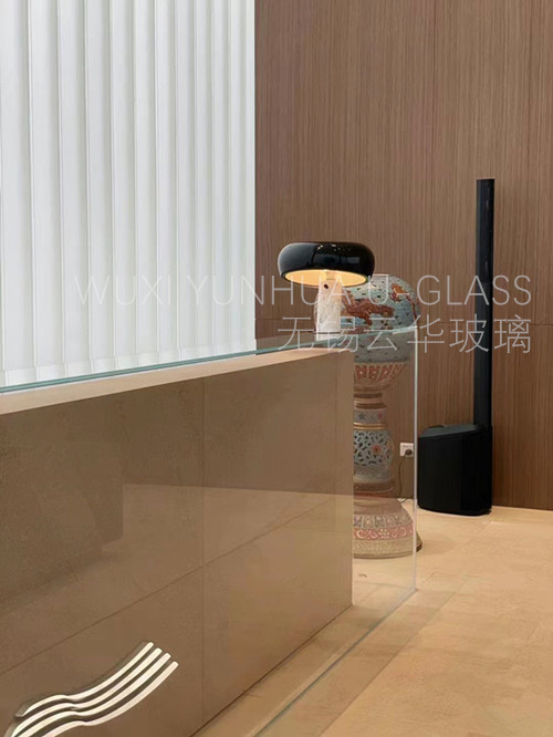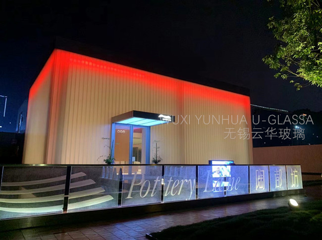 選用無(wú)錫云華K25*90*8超白香梨紋噴砂U型玻璃, 約7.6米