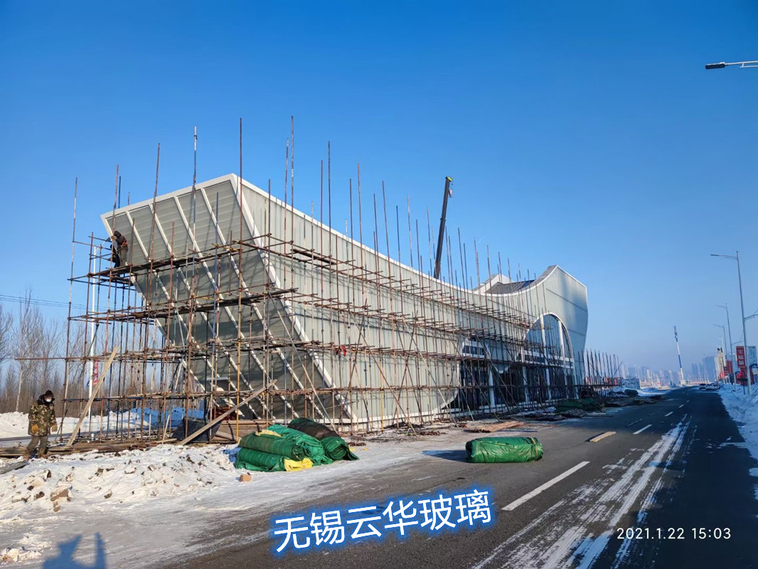 使用無錫云華U型玻璃:331*90*8超白細條紋噴砂、262*60*7超白夾絲