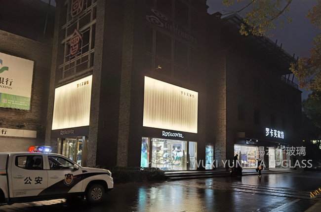 選用無錫云華K25*60*7超白粗條紋噴砂U型玻璃
